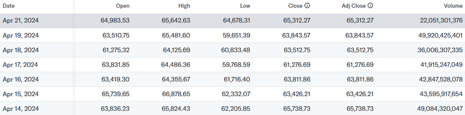 Costly things matters in our ecosystem, today (21 April 2024), the value of one bitcoin is approximately 64983 $. This is humongous value that cannot be overlooked. Bitcoin is a major cryptocurrency, and its fluctuations can have a ripple effect on the entire cryptocurrency market. Keeping updated with Bitcoin price movements helps us stay informed about broader trends in the crypto space.