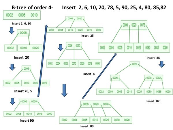 Insert 2, 6, 10, 20, 78, 5, 90, 25, 4, 80, 85,82
