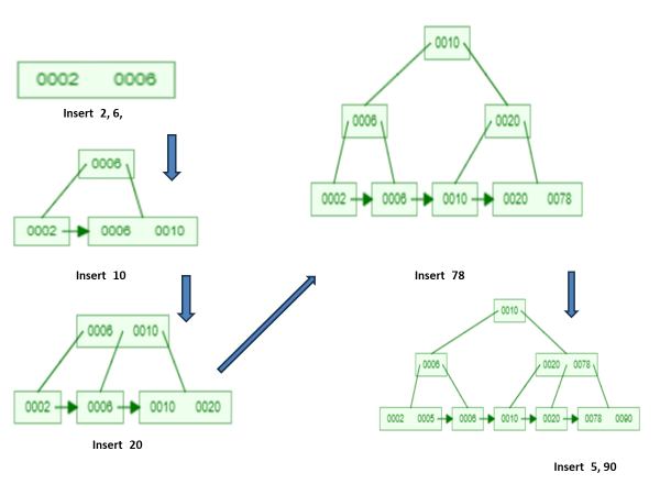 Example-1 : In B+ Tree of order 3, Insert 2, 6, 10, 20, 78, 5, 90