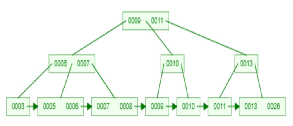 •The leaf nodes of a B+ tree are linked together in the form of a singly linked lists to make the search queries more efficient.