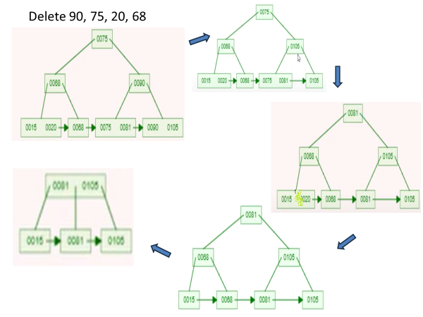 Example-2 : In B+ Tree of order 3, Delete 90, 75, 20, 68