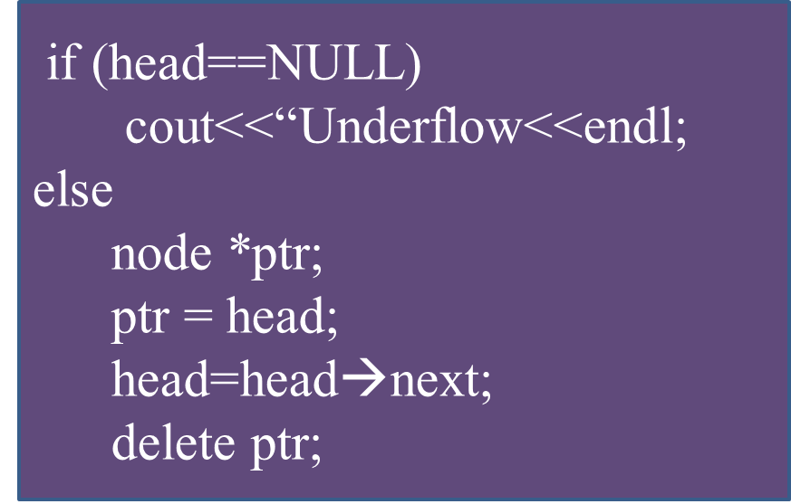 If Head = NULL, then there are no nodes in the list and the control is transferred to the last statement of the algorithm. (UNDERFLOW)