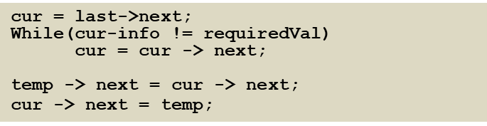 Take an external pointer named “last” that points to the last node of the list. last à next will point to the first node.